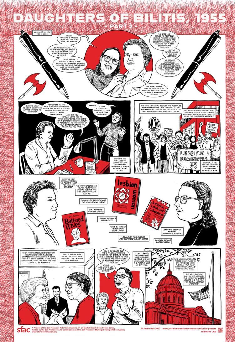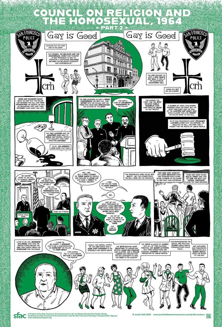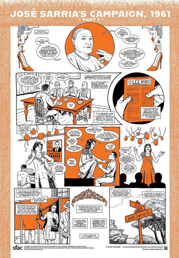 “Justin Hall's series amplifies six important moments in San Francisco's LGBTQ history, and with the medium of comics, makes these histories compelling and relatable," acting director of cultural affairs Denise Bradley-Tyson said in a statement to the press. “While these stories are just a few among countless other significant moments, Hall's work celebrates the decades of struggle, resistance, strength and triumph in the City's LGBTQ community.”