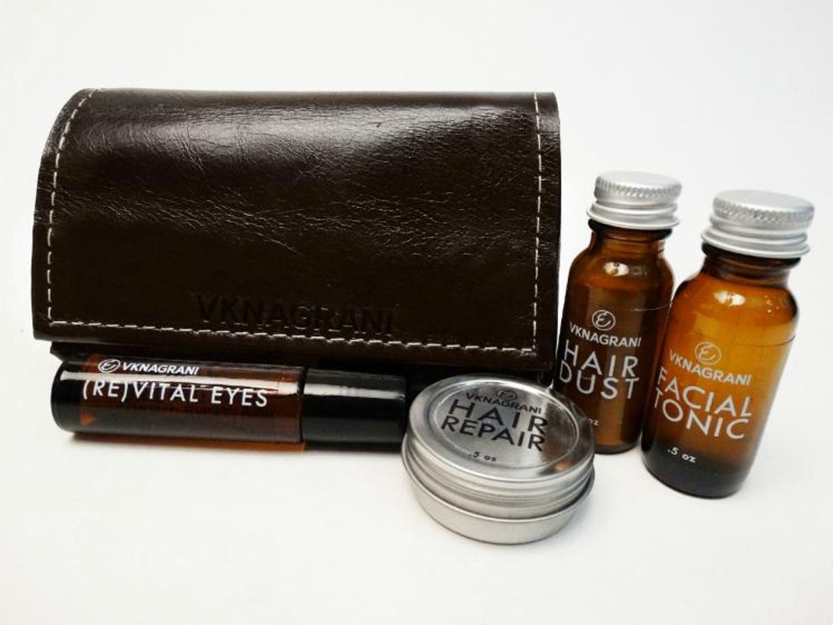 VK Nagrani has you covered. The Landing Gear travel survival kit is the perfect remedy for a red eye flight. With a facial tonic, hair dust, hair repair, and (re)vital eyes, it comes in a sleek leather case that fits perfectly in a carry-on. It also makes a perfect gift for the jetsetter in your life.