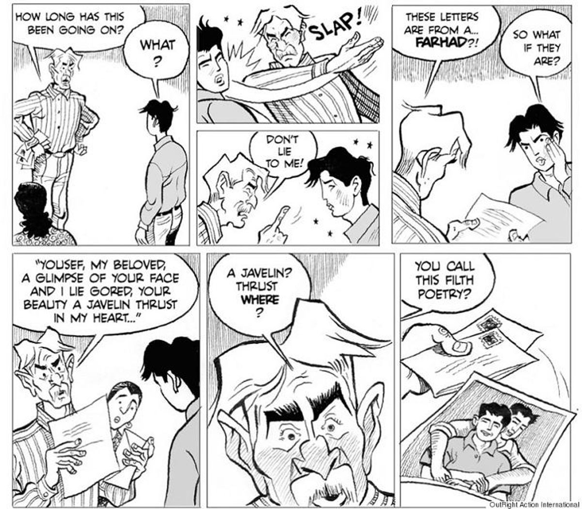 In a partnership with the LGBT human rights organization OutRight Action International, artists Amir Soltani and Khalil Bendib created a graphic novel series titled “Yousef and Farhad” in order to offer a glimpse of what it’s like to be gay in Iran.