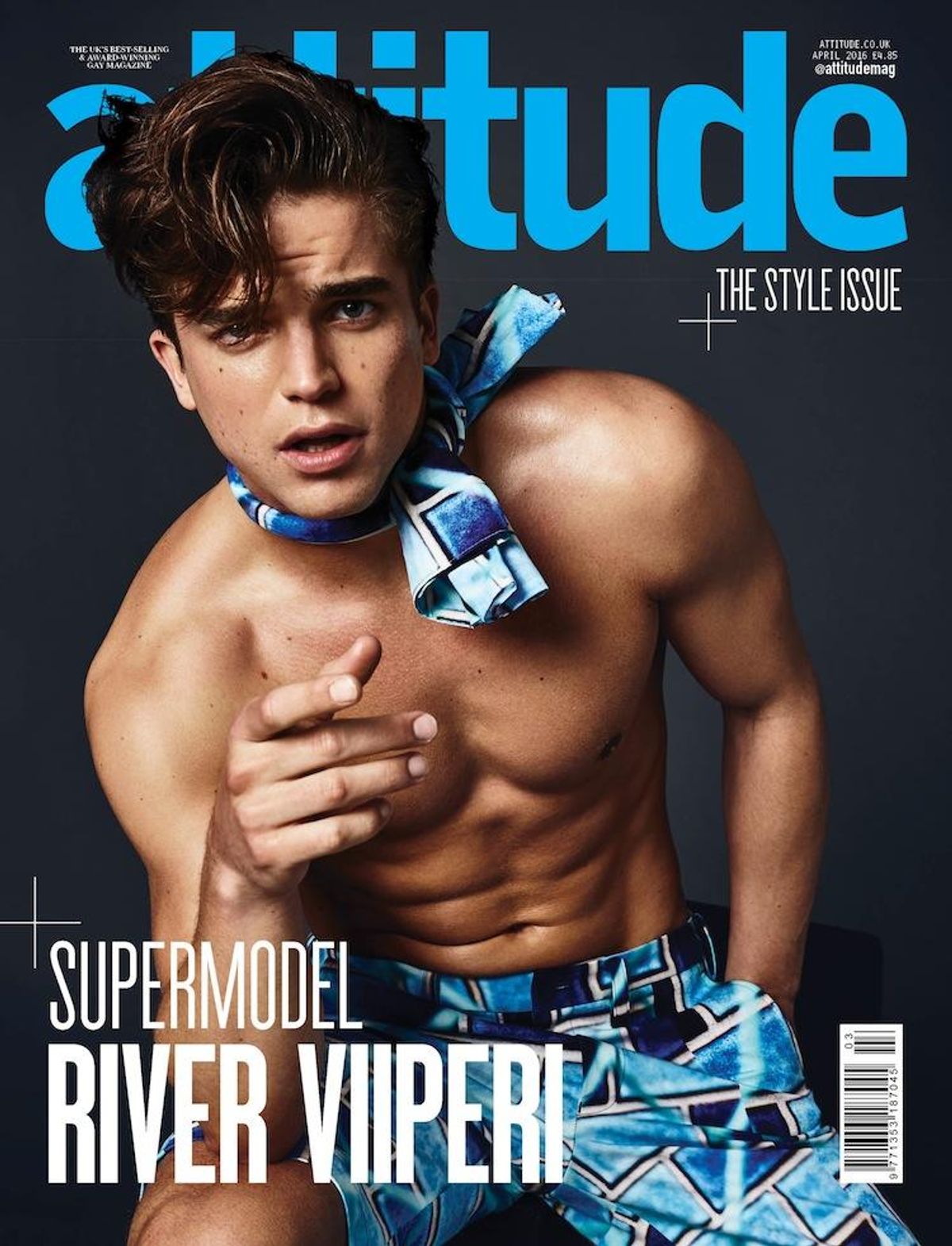 River Viiperi is looking all grown up on a special edition cover of Attitude. The blue color scheme brings out the slightest hue in his eyes. (But with a body like his, it’s safe to assume people won’t be focused on his eyes.)