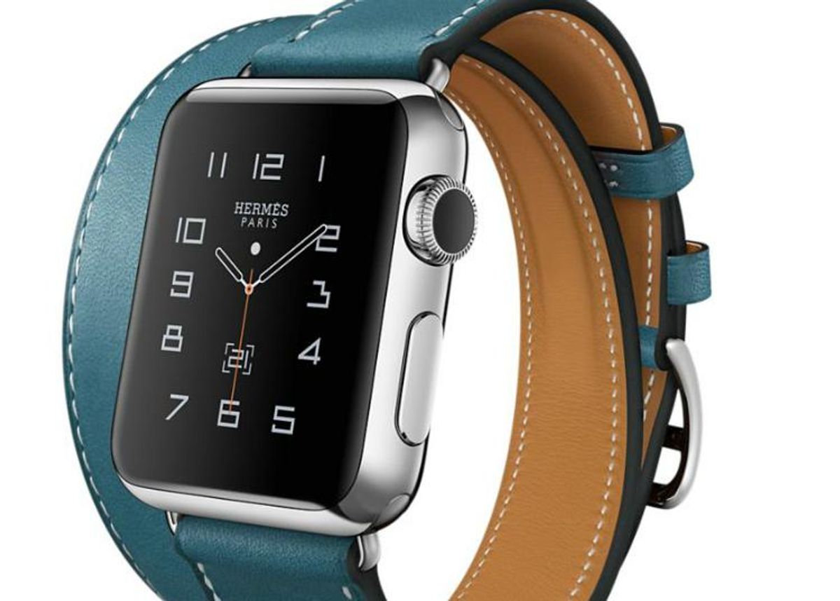 Apple Watch Hermès Double Tour, 38mm Stainless Steel Case with Bleu Jean Leather Band, $1,250 at Apple