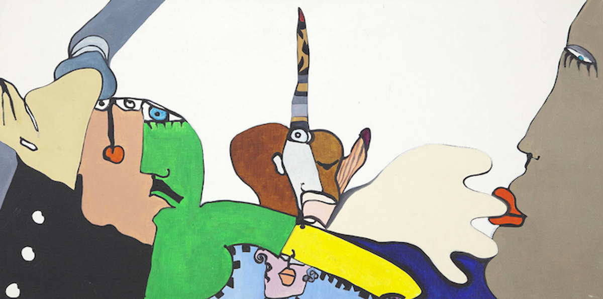 Huguette Caland, Enlève ton doigt, 1971, Oil on canvas. 15 × 30 in. (38.1 × 76.2 cm). Courtesy of the artist and Gallery Janine Rubeiz, Beirut.