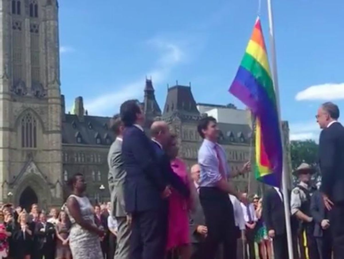 In honor of Pride month, the Canadian prime minister joined other politicians to raise the Pride flag on Parliament Hill for the first time in Canadian history.