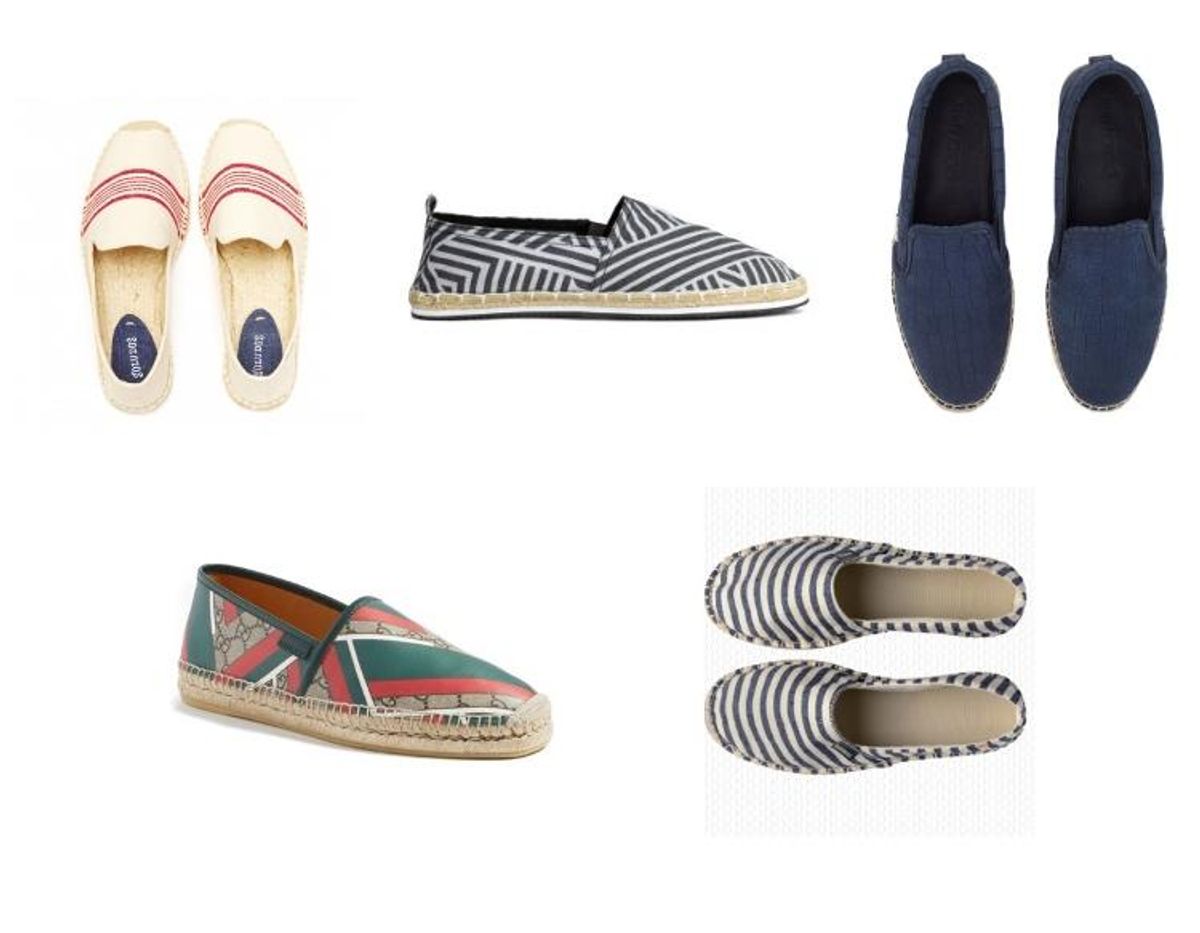 The espadrille, footwear that originated in the Pyrenees sometime in the 14th century, are notable for their soles generally made of jute rope. Light on the feet and easy to slip on, espadrilles make the perfect summer shoe since they readily transition from casual to dressier occasions. Here are five of our favorites from this season (clockwise, from upper left):