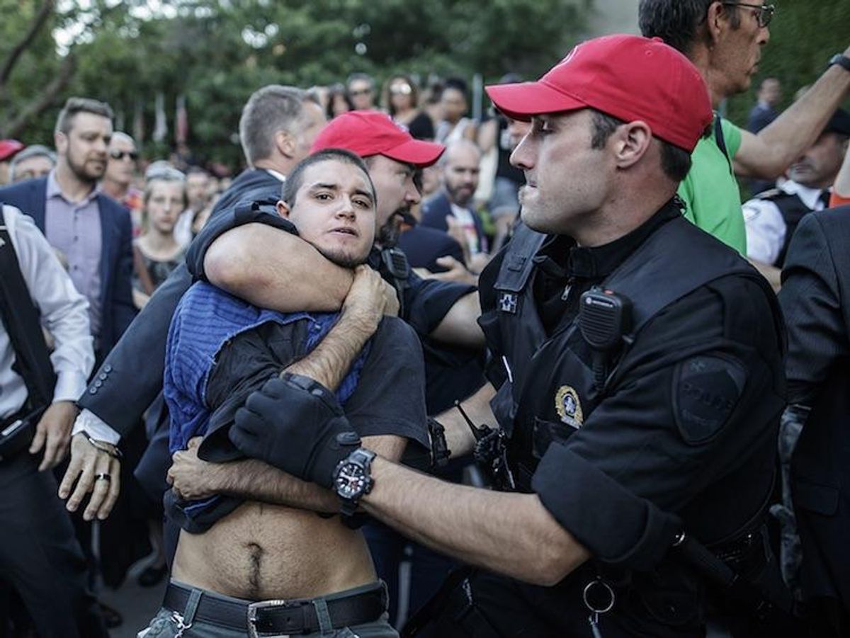 After the tribute speeches, Torres approached Couillard amongst the crowds, and shouted “Revolution” and “We will take back the street” in his face. Some witnesses report that Torres tried to slap the Canadian politician and throw a piece of paper in his face.
