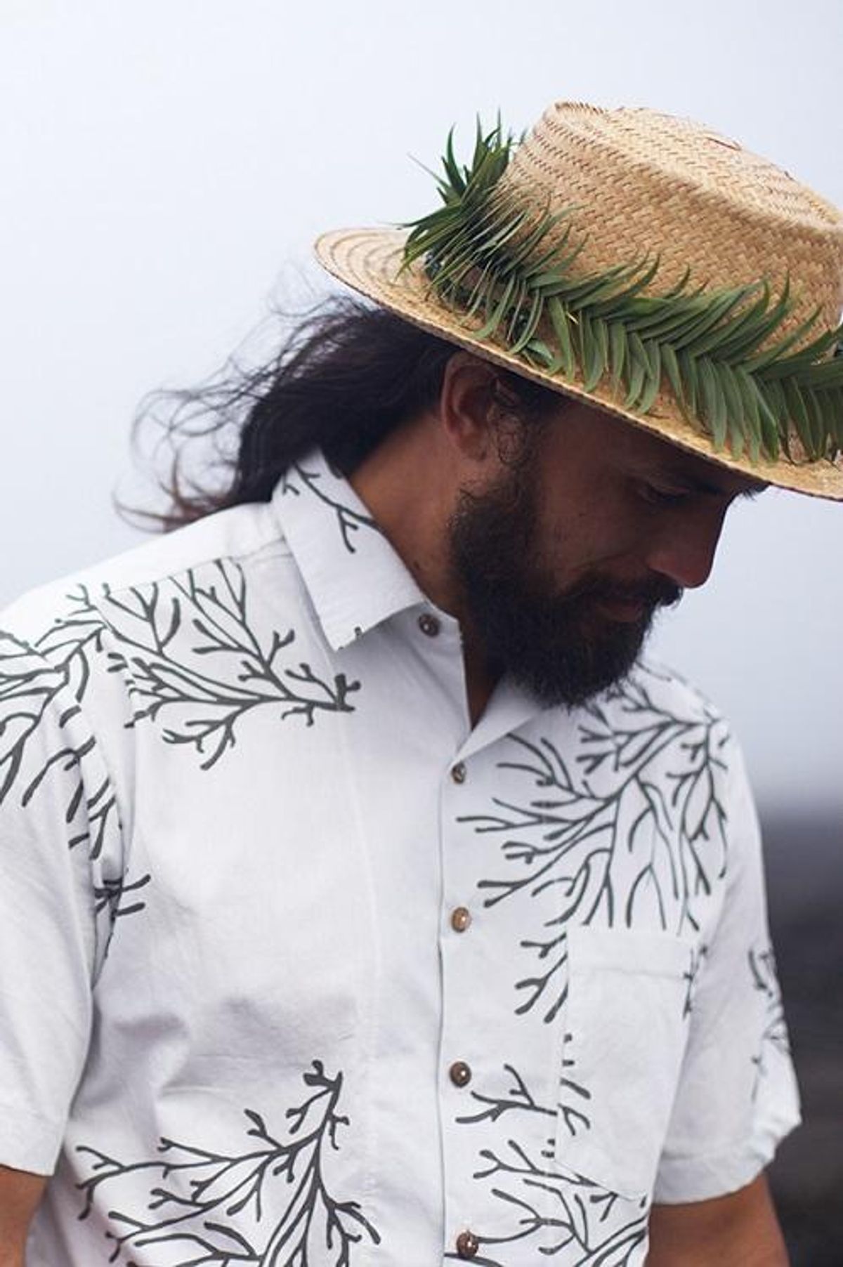 At top: Kealopiko Kahikikū Aloha Shirt, ʻĀkoʻakoʻa - White, $90