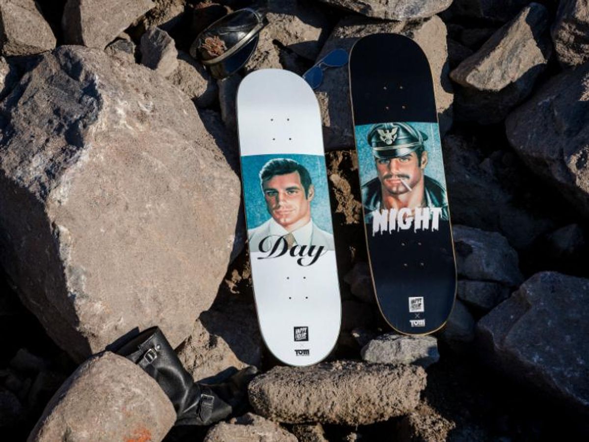 The Happy Hour Skateboards x Tom of Finland collection also features a limited edition clothing collection and will be available Saturday, April 8 at the Tom of Finland Store.