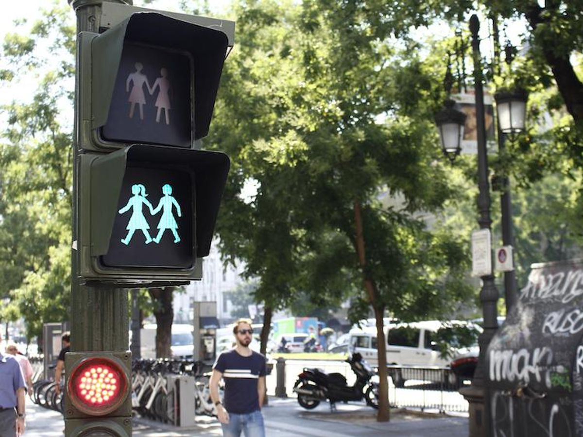 Madrid just earned itself some LGBTQ street cred. Earlier this month, 288 crosswalk signs across the city got a queer makeover, swapping out the ubiquitous green man for outlines of same-sex couples. “Our goal was to create an influential, forward-thinking visual campaign to go hand in hand with the upcoming WorldPride festivities,” said Inés Sabanés, delegate of the local Ministry of Environment and Mobility.
