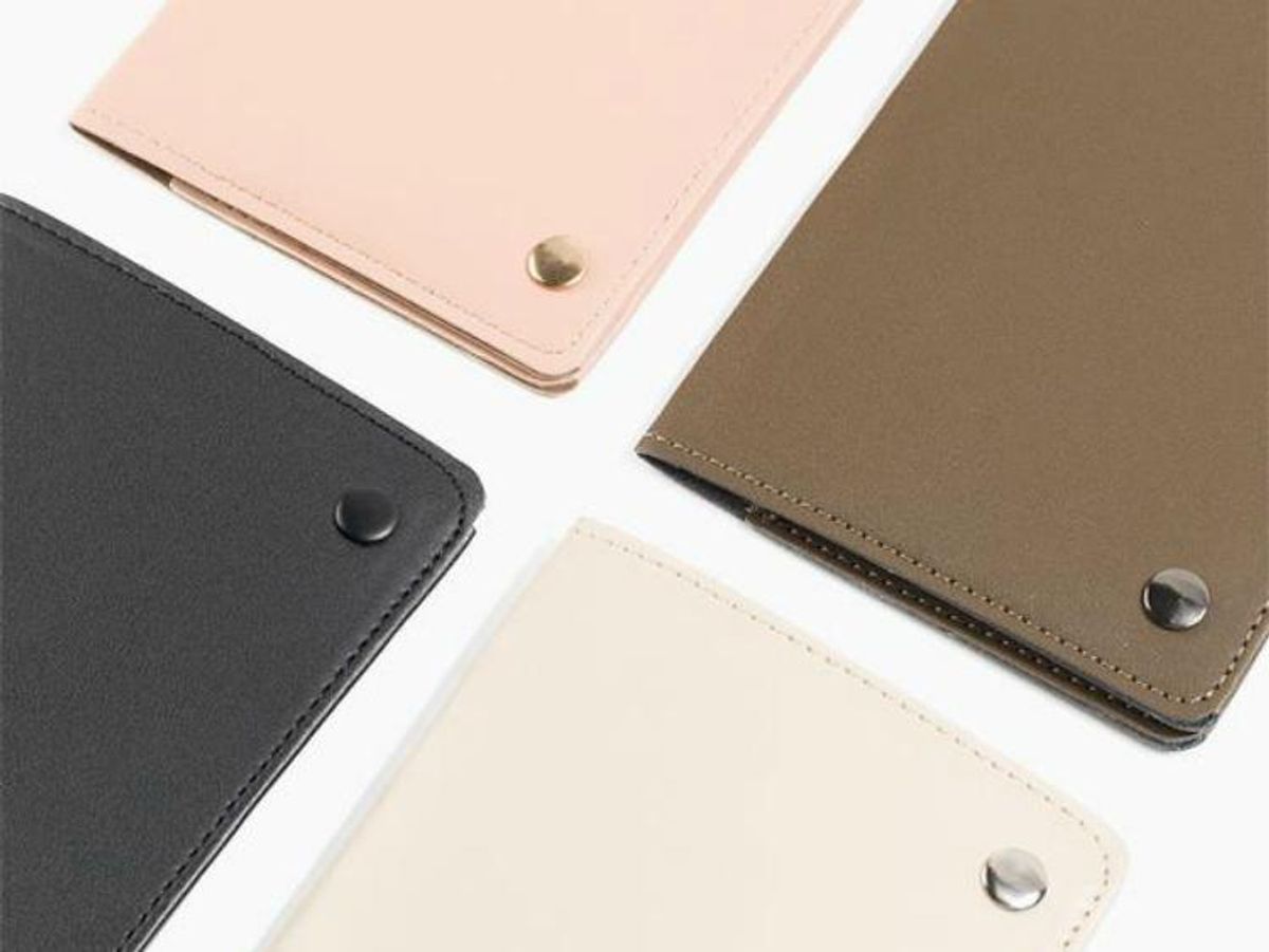 The minimalist passport organizer comes in olive, black, cream and blush. It's made from vegan leather, which means it's perfect for the animal lovers too.