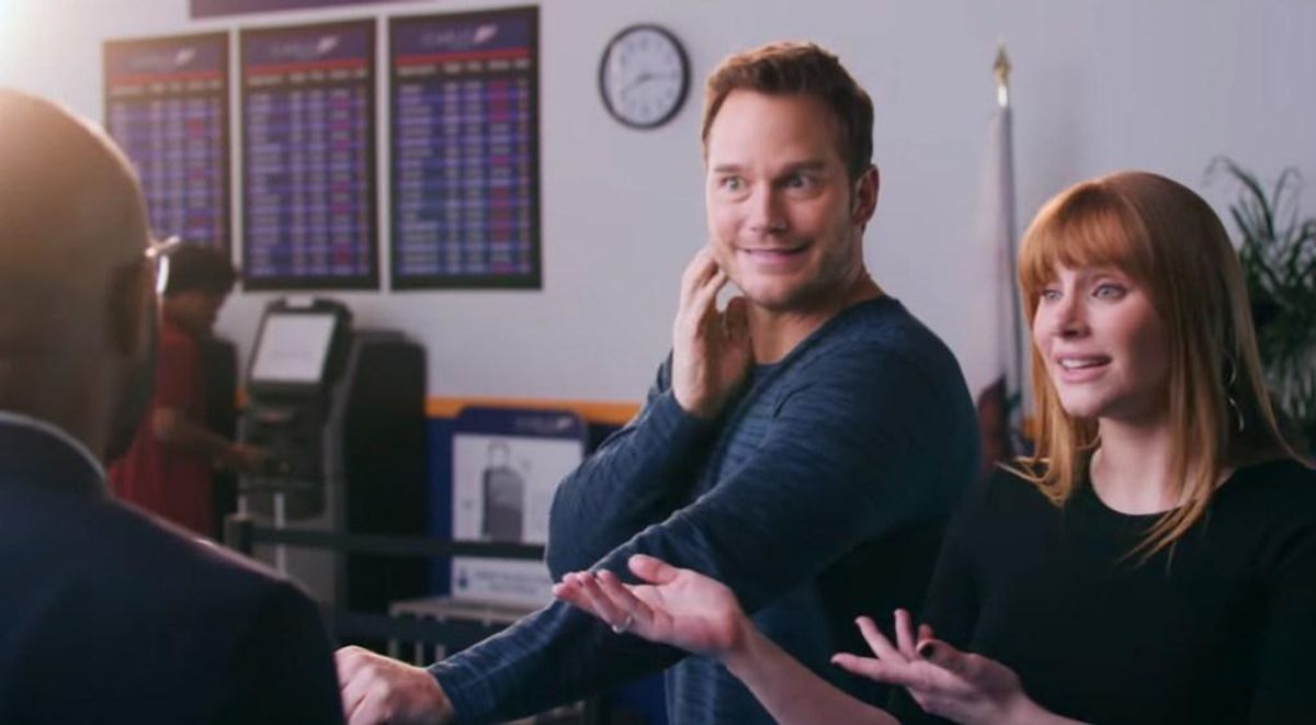 With news that United has banned all sorts of breeds of cats and dogs, this video featuring Chris Pratt trying to check in his service dinosaur couldn’t be timelier. The video shows the stars of Jurassic World, Pratt and Bryce Dallas Howard, placing a baby raptor in its cage onto the check-in counter.