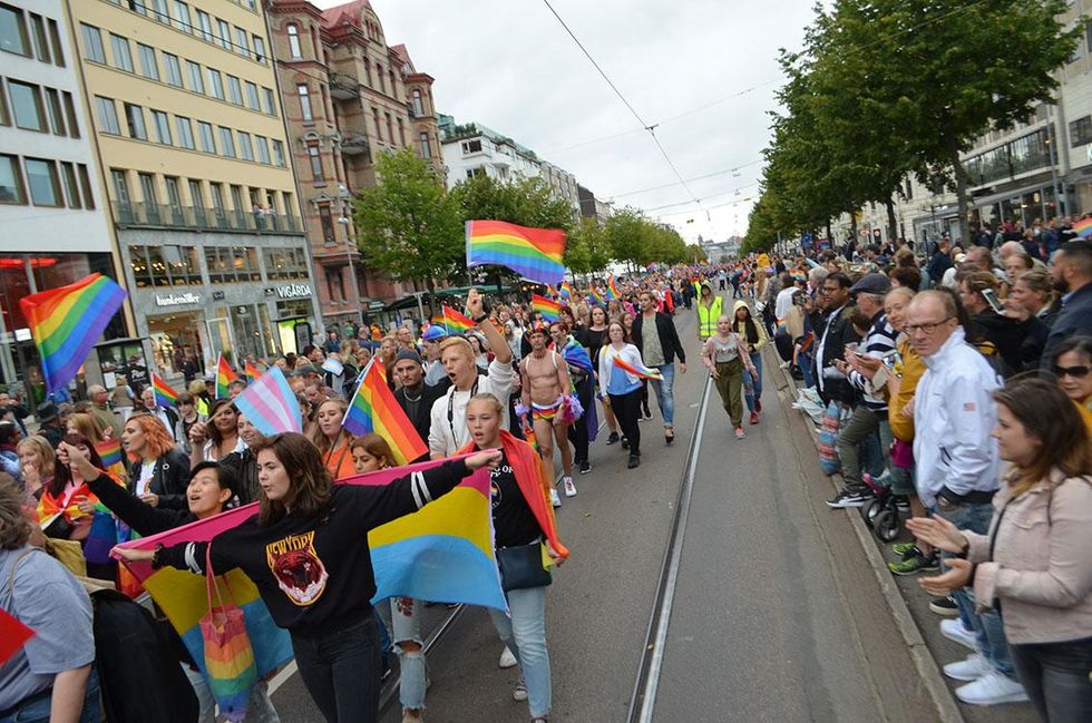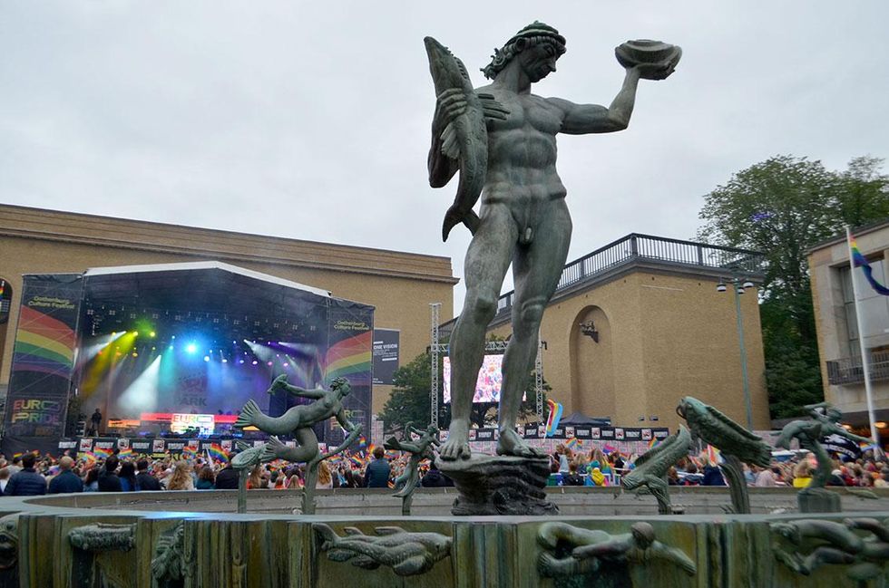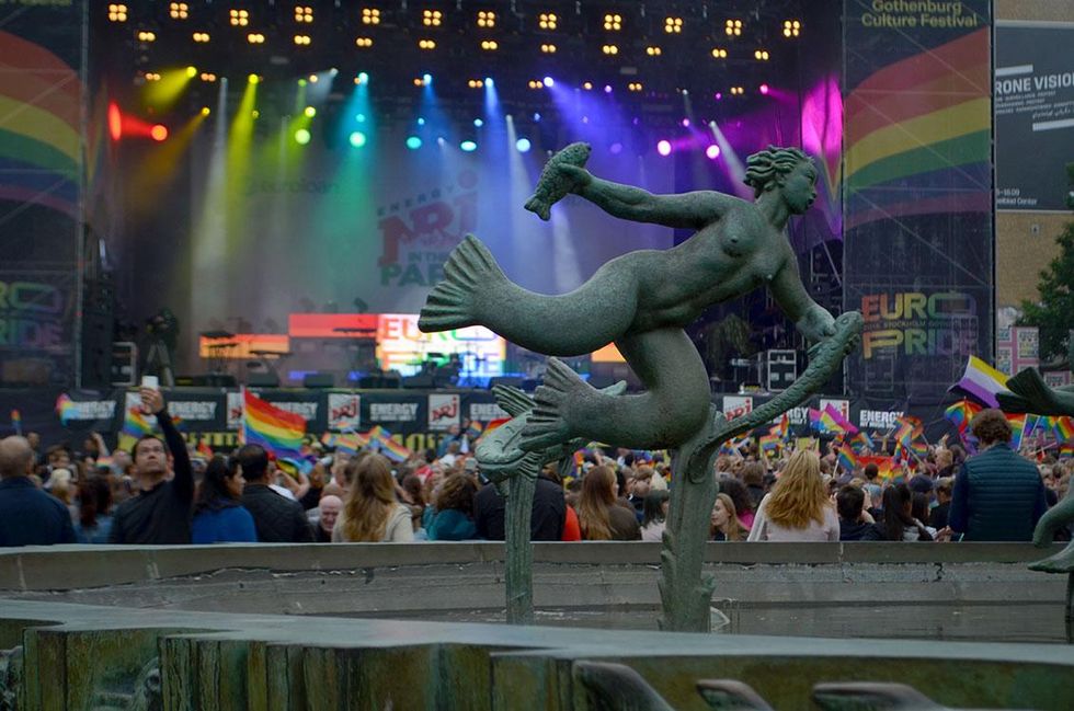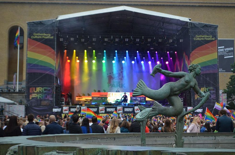 There was great attendance during Saturday's second act of the historical EuroPride in Gothenburg. Tens of thousands of people marched from the Heath, by Gothenburg City Center through the main avenue, Avenyn, and up against götaplatsen and Poseidon where the evening ended with an elaborate concert with Boy George and Culture Club. A very vibrant weekend with a lot of festivities and manifestations around the city, one of the most energetic events we've attended this Pride season.