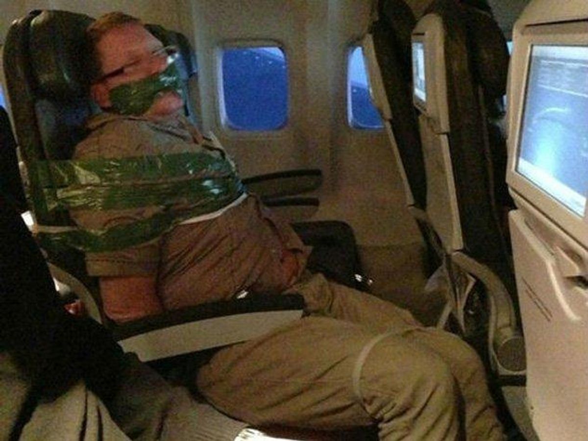 While it's a nightmare to sit next to a smelly, unruly, or rude airline passenger, it's quite amusing to stare at one through your computer screen. A meme website recently compiled 21 pictures of the most offensive fliers in the skies. After seeing this collection, we may have to lobby the FAA to implement a "no shirt, no shoes, no service" policy (FYI, the duct-taped passenger had to be restrained because he was too drunk). Check out some of the images below, and click here to see the full collection. Images courtesy of passengershaming.com.