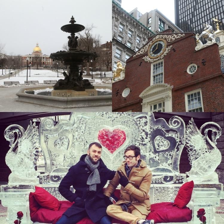 The next morning, we decided to walk The Freedom Trail, a 2.5 mile long, self-guided tour of Boston’s historical sites, which begins at the Commons and includes Paul Revere’s house and the site of the Boston Massacre. It was a little warmer, and we felt we’d regret leaving Boston without seeing at least one person dressed up as a founding father. The trail led us, naturally, to a mall and food court called Faneuil Hall, complete with a bar decorated like the set of Cheers, including cardboard cutouts of Rhea Perlman and Shelley Long. Apparently it is often referred to as the “cradle of liberty” because of its role as a meeting place and market during the revolution. There was also a ice throne with roses frozen inside of it, which we took a very romantic picture on. No one heckled us, which was a nice confirmation of the feeling of welcome that we had experienced since arriving.