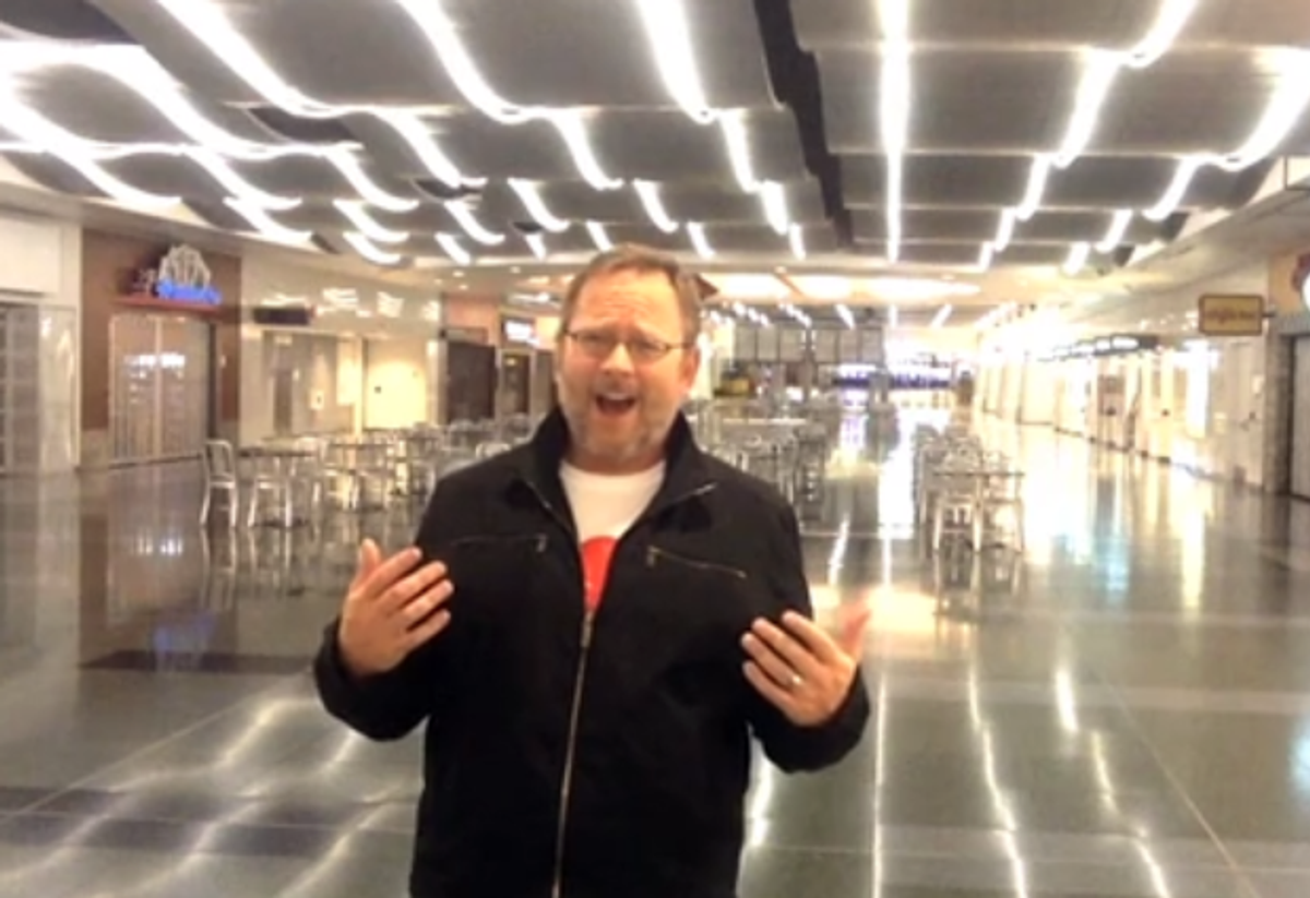 Traveler Richard Dunn was recently stuck at the Vegas airport when his flight was canceled, and the next wasn't scheduled for 14 hours later. Instead of taking himself to the Strip, Dunn filmed himself lip-synching Celine Dion's "All By Myself" (doubly appropriate) while posing by his lonesome among the terminal (he got some assistance from an airport employee). We may have a new Scorsese here; watch below.