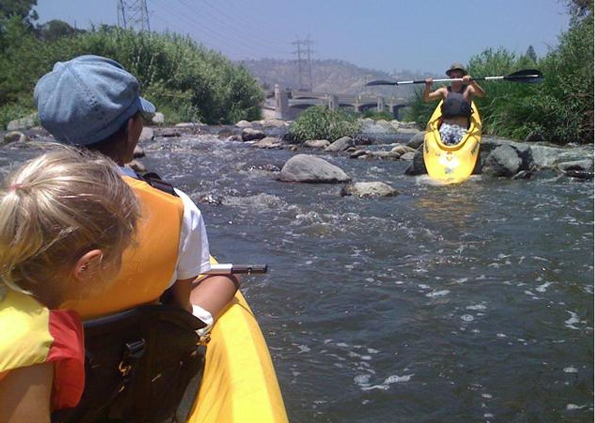 The scene in northeast Los Angeles this weekend was something you'd picture in Boulder or Spokane: happy people kayaking down a bucolic river. The city just opened a stretch of the Los Angeles River closed off from people since the 1930s; encased in concrete to protect against floods that routinely hit the city (the famous Grease car chase happened among the river's concrete banks).
