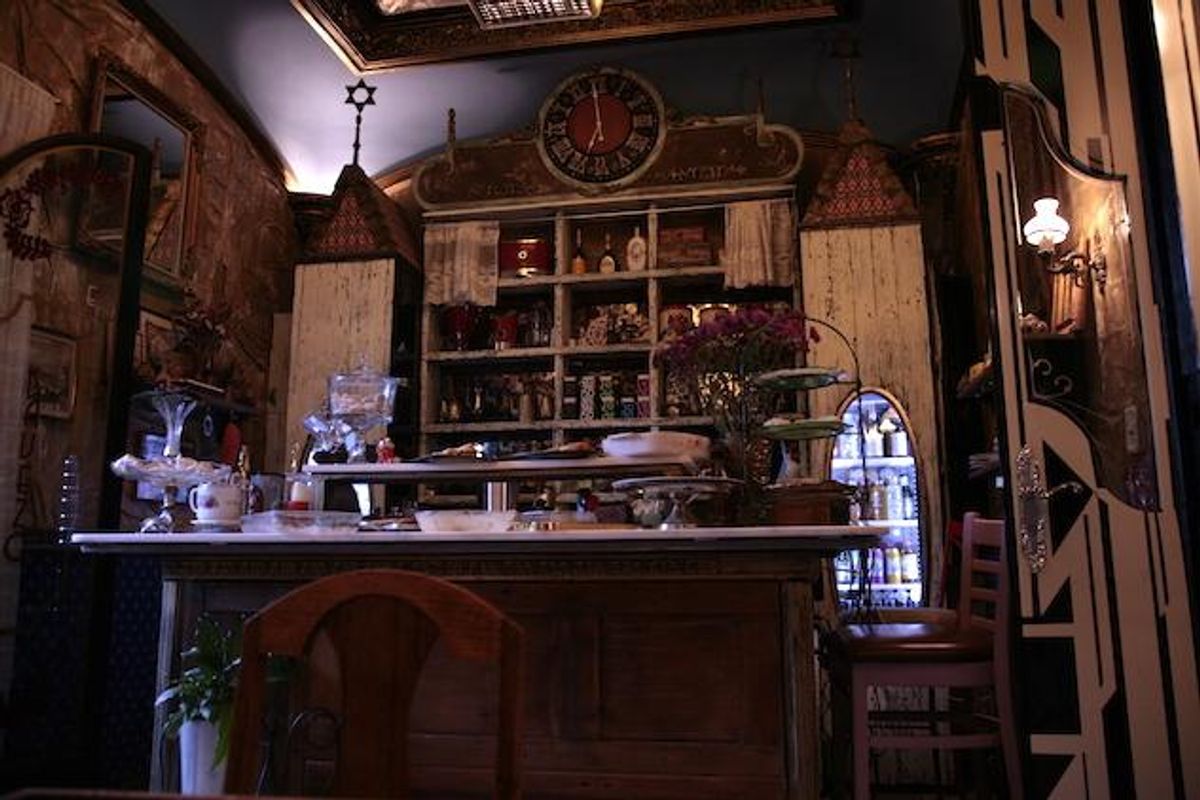 Lavish blue and red tea sets are displayed on the late 19th-century furniture. Satin turquoise curtains cover the crystal windows. With barely 11 dark wooden tables, this intimate restaurant provides secret and traditional family recipees (they emigrated from the European country).
