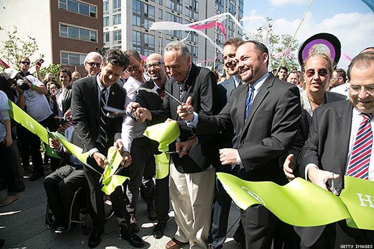 The High Line was conceived by two gay men back in the late 1990s, who based it on a similar elevated park in Paris. Pictured above is Manhattan's out councilman, Corey Johnson, cutting the park's ribbon.