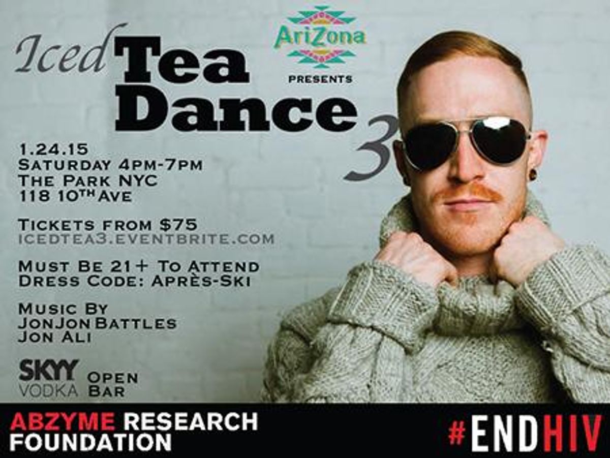 Join the host committee of Abzyme Research Foundation’s third annual Iced Tea Dance by AriZona at the Park NYC on January, 24th, 2015. Like previous years, we’ll have an open vodka bar, great music, and a wonderful way to shake of the post holiday blues all to fund the testing of a new potential cure for AIDS. SKYY Vodka and Arizona will provide delicious seasonal cocktails, and the party will have lively beats by Jonjon Battles and Jon Ali.