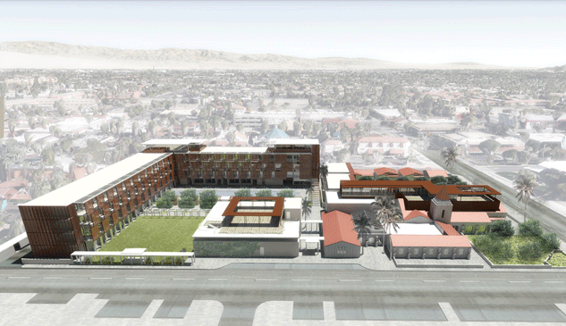 The architect, Gwynne Pugh of Urban Studio in Santa Monica, plans to use the church remains as the entrance to the hotel. Pugh plans on leaving the church in the blackened and damaged state to preserve the history of the building.