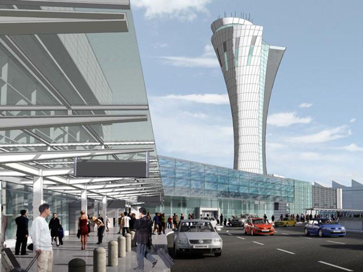 The final beam for the tower will be placed Tuesday, with an evergreen tree and an American Flag added to the top. Designed by Fentress Architects, the tower sits between Terminals 1 and 2 and includes offices for the Federal Aviation Administration and publicly-accessible corridors in its 44,000 square foot base. Fentress declares their tower will be the first image passengers see upon arriving at SFO.