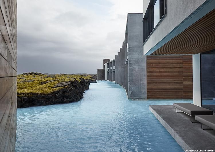 The Sky Lagoon (www.skylagoon.com) pays tribute to Icelandic bathing traditions with a seven-step process they call “The Ritual.” You start off in the lagoon, which is filled with geothermal water. You can lounge on benches carved into the lava rock or there’s a bar in the middle, where you can enjoy juices, nonalcoholic wines, and some alcoholic beverages like prosecco. The lagoon overlooks Kàrsnes Harbour and the waters of the lagoon appear to pour right into it.