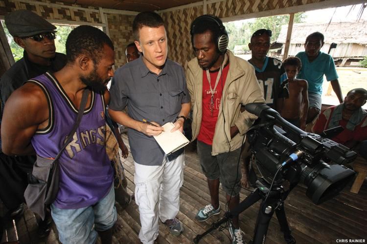 Harrison with John Agid (left) and Hickey Willie (right) in Papua New Guinea