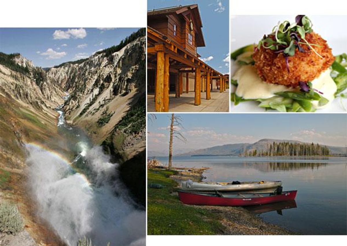 Photo credit: Courtesy of the National Park Service (Yellowstone). Courtesy of Xanterra Parks & Resorts (lodge). Courtesy of Rendezvous Bistro (food).