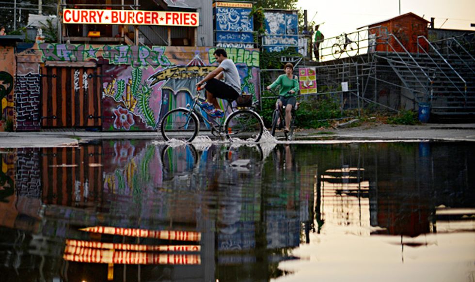 Food options are endless, including many Thai, Korean, and German restaurants. Datscha (Cafe-Datscha.de) serves incredibly lush borscht, and Mutzenbacher (Mutzenbacher-Berlin.de) melds Austrian-style cuisine with a hint of glammed-up Alpine décor. Himmelreich (Gay-Friedrichshain.de/Himmelreich) is a convivial queer locals’ spot with lots of outdoor seating, cherubs dangling from the ceiling of the bar, and a ladies’ night each Tuesday. Watch out for bicycles in this neighborhood; cyclists apparently don’t much care for the idea that they should be kept to the streets. Pedestrians be warned.