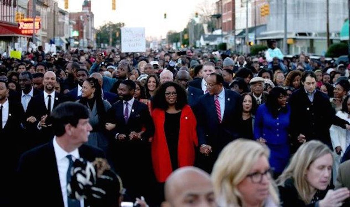 Oprah and fellow Selma cast mate also marched through Selma, Alabama yesterday to pay homage to Martin Luther King Jr. and all civil rights marchers. Standing in front of Selma City Hall, Oprah gave an articulate and inspiring speech.