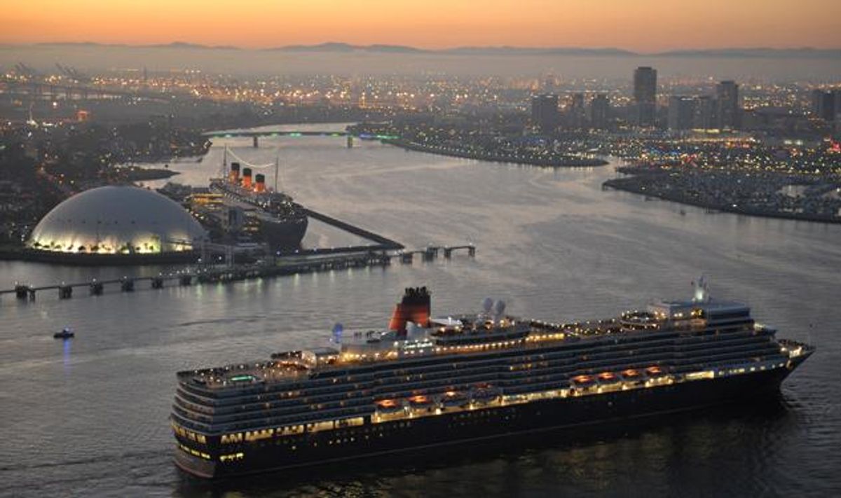 The Queen Mary Welcomes Cunard's Queen Elizabeth Passenger Ship to Long Beach Harbor