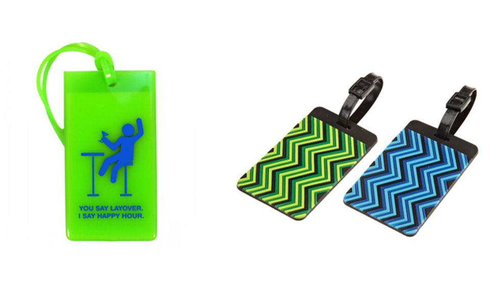 Left: Flight001 Happy Hour Rubber Tag, $7; right: Travelon Luggage ZigZag, $9.05 for two