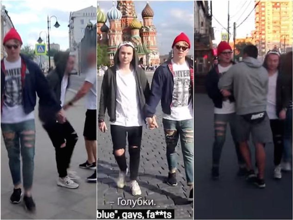 Throughout their experiment, the two friends were laughed at, sneered at, called homophobic slurs, and even physically pushed and forced to stop holding hands. The jarring clip showcases just how bad out LGBT people have it in Russia, and comes on the heels of many controversies started by antigay politicians like Vitalty Milonov.