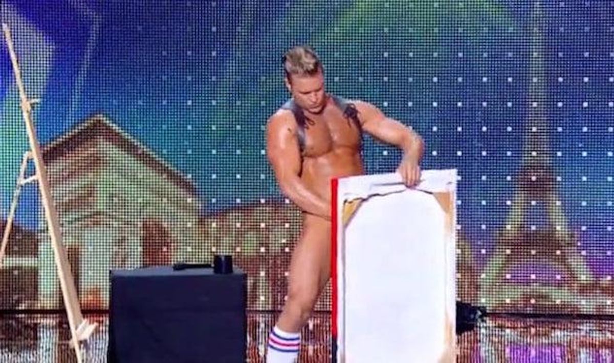 Canadian performance artist and humpy former erotic entertainment industry model Brent Ray Fraser recently appeared on France’s Got Talent, knocking one out for the panel.