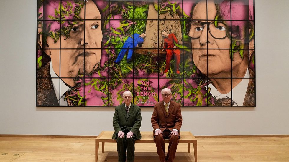 The pair — Gilbert Prousch and George Passmore — have been working together for six decades, creating absurdist performance art and image-based works centered on the idea that the artists are "living sculptures" — and that everything they do is art.