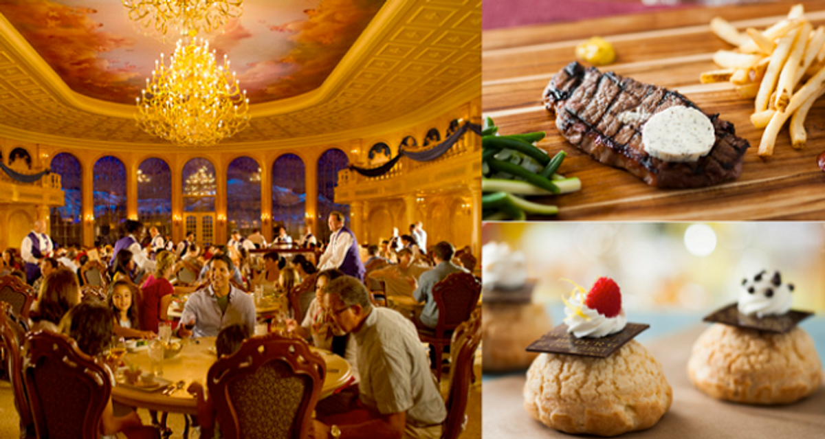 IGN reports that details on Beast's castle, which has been stunningly recreated and includes the French-inspired Be Our Guest restaurant and attraction. Be Our Guest (pictured above) uses the elaborate ballroom as the main dining hall, and other locations at the restaurant include the armor hallway and Beast's parlor where guests 'magically' put in their orders during lunch and the food comes to them wherever they are (menus available online). Two other dining areas include the West Wing (devoted to the Beast with shredded curtains and enchanted rose included) and the Rose Gallery (which features a large music box centerpiece and a 7-foot tall Belle and Beast rotating on top, and characters from the film all over the walls). Dinner brings not only elegant food selections, but stands to be the first and only location in the Magic Kingdom where alcohol can be purchased (although only wine and beer).