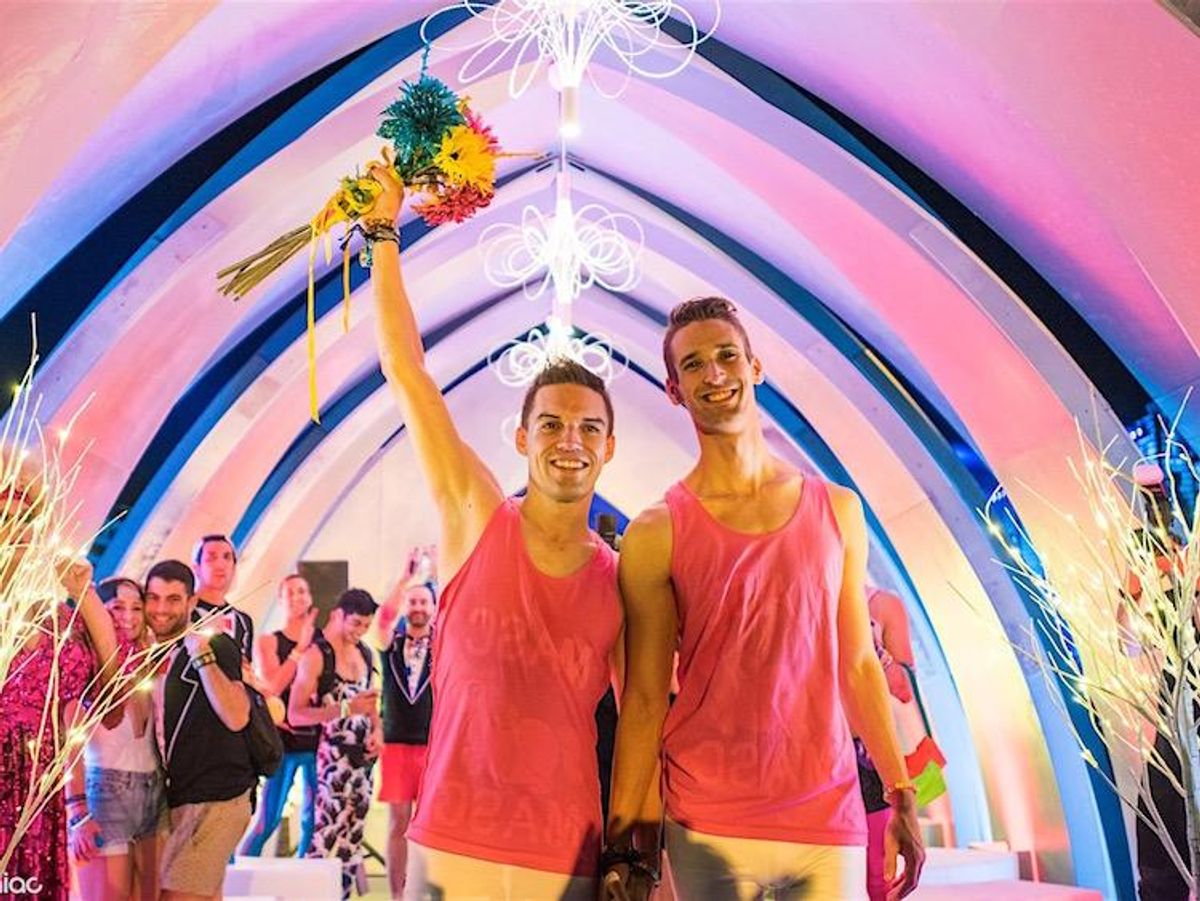 The Electric Daisy Carnival (EDC) has become a must for serious festival goers and this year's event in Las Vegas was no exception. Of course, the event featured crowd-pleasing headliners like Zedd, Martin Garixx, and The Chainsmokers, but it was also the venue for a gay wedding between two EDM fans, Chris and Skye, who were married in a small chapel constructed between stages.