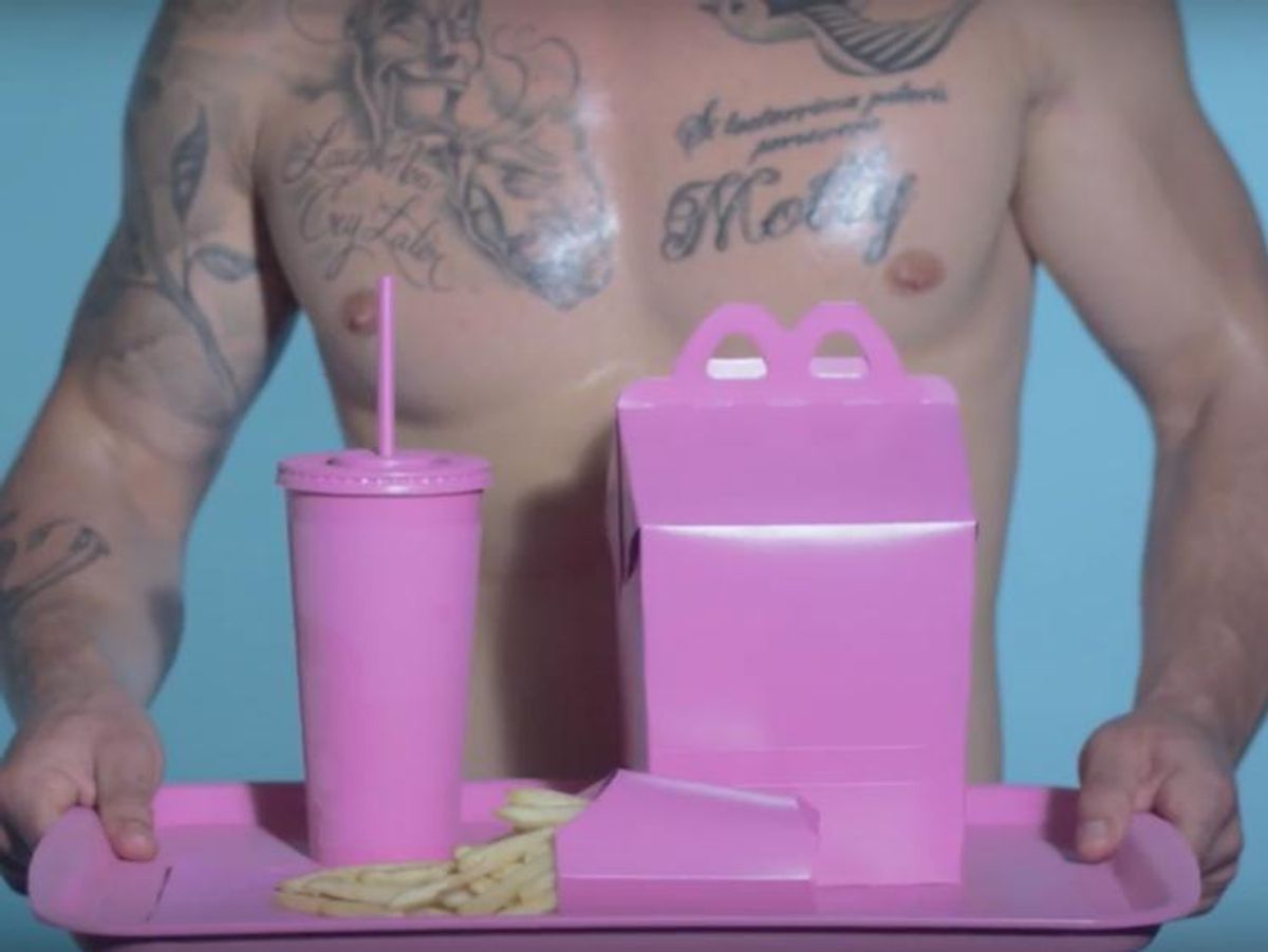 Some scantily clad men star in a new promo for Room Service, the club night hosted at Club 49. The boys play with some mysteriously colorful foods before burning off the calories in a sweaty workout sequence. They serve some Betamax realness in what appears to be a porn parody of that exercise tape that your mom had on the shelf but never used.