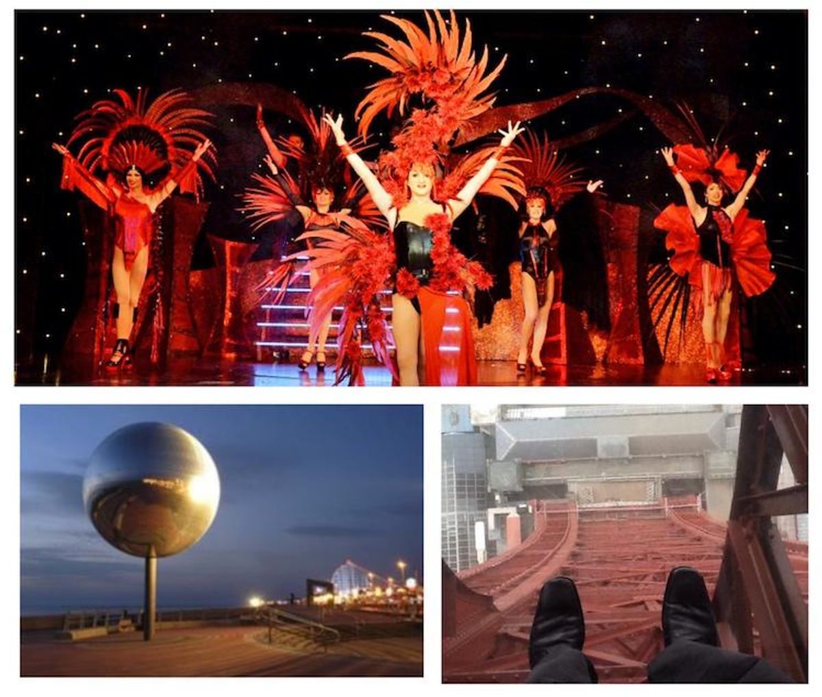 Above: Funny Girls (top, courtesy of Funny Girls); They Shoot Horses Don't They? (bottom left, courtesy of VisitBlackpool.com); a view from the top of Blackpool Tower (bottom right, photo by Bryan van Gorder).