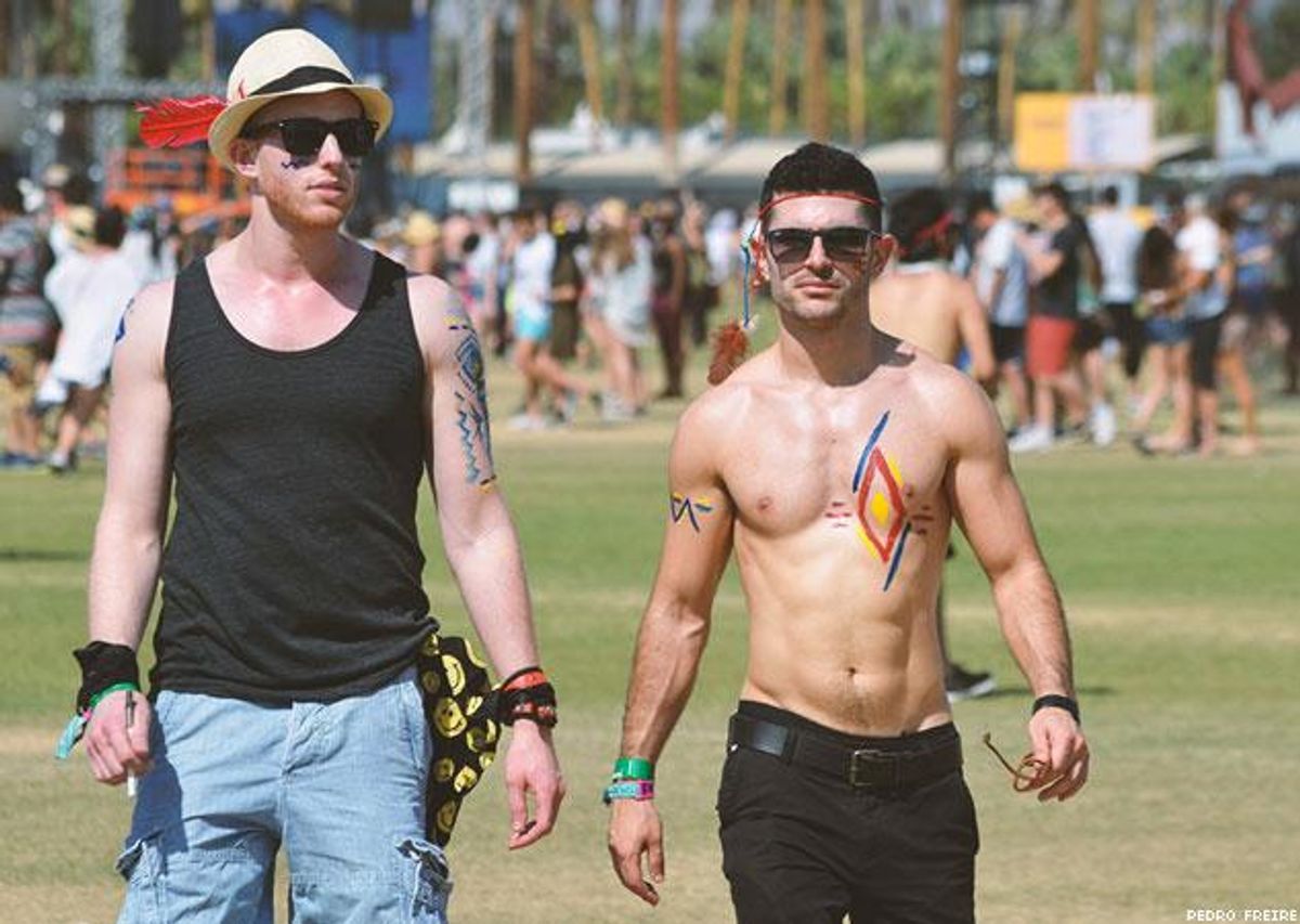 The 15th Coachella Valley Music and Arts Festival, which wrapped on Sunday, is gaining a reputation as a money-soaked, hipster paradise, where partying and being seen is paramount and the music is an after-thought. The reality is not entirely far-off — the event is a very expensive endeavor, especially for the Millenials that constitute the majority of the attendees, and the creature comforts like VIP tickets and chef-created meals are only within reach of trust-fund babies, techie millionaires, and movie stars (many of which don't pay a cent to go to Coachella). But there is no doubt that music is still a big draw at this LGBT-friendly event, with the crowd's rapturous delight for artists like Lorde, MGMT, Arcade Fire, Pharrell, and Solange Knowles. The latter artist had a calvalcade of gay fans at her show, no doubt encouraged by the appearance of Solange's famous sister during the first weekend of Coachella 2014. See the queer faces of the festival below, as well as the simply gorgeous: