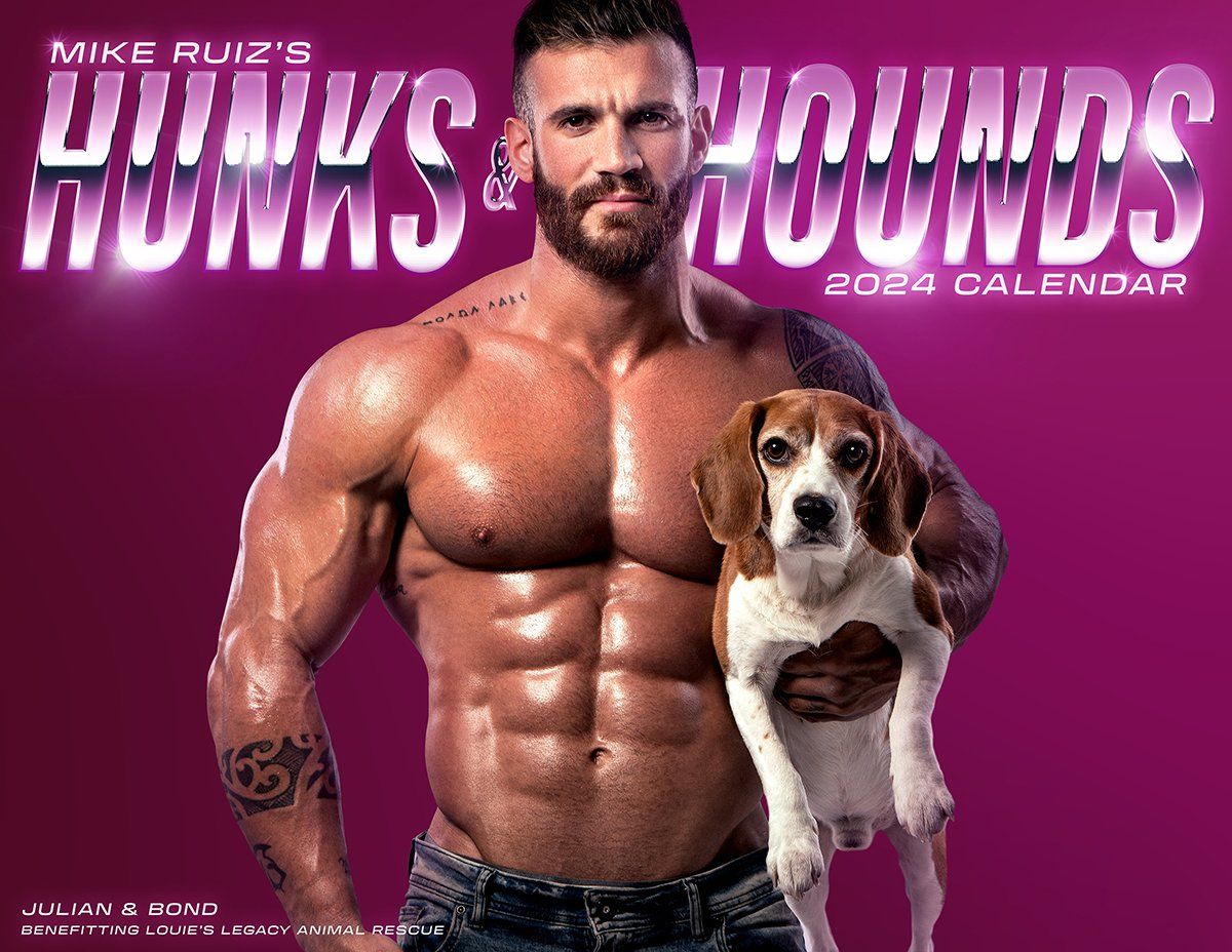 Ruiz is also an animal rescuer who uses the calendar to raise funds for worthy causes. He’s using this 2024 edition of the Hunks & Hounds calendar to raise funds for the no-kill shelters of Louie’s Legacy Animal Rescue, which was also the beneficiary of the first Hunks & Hounds calendar.
