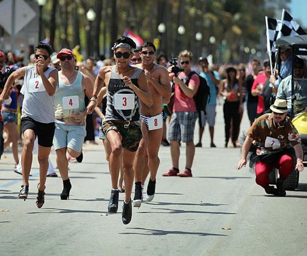 The Pride season is off an running, with Miami Beach kicking off the colorful and celebratory season this the traditional parade and, for the first time this year, the Azucar High Heel Race. The race participants, according to the rules, had to wear high heels no less than 3 inches, approximatly 10 people entered the race to have a chance of winning the 1st place prize of $500.