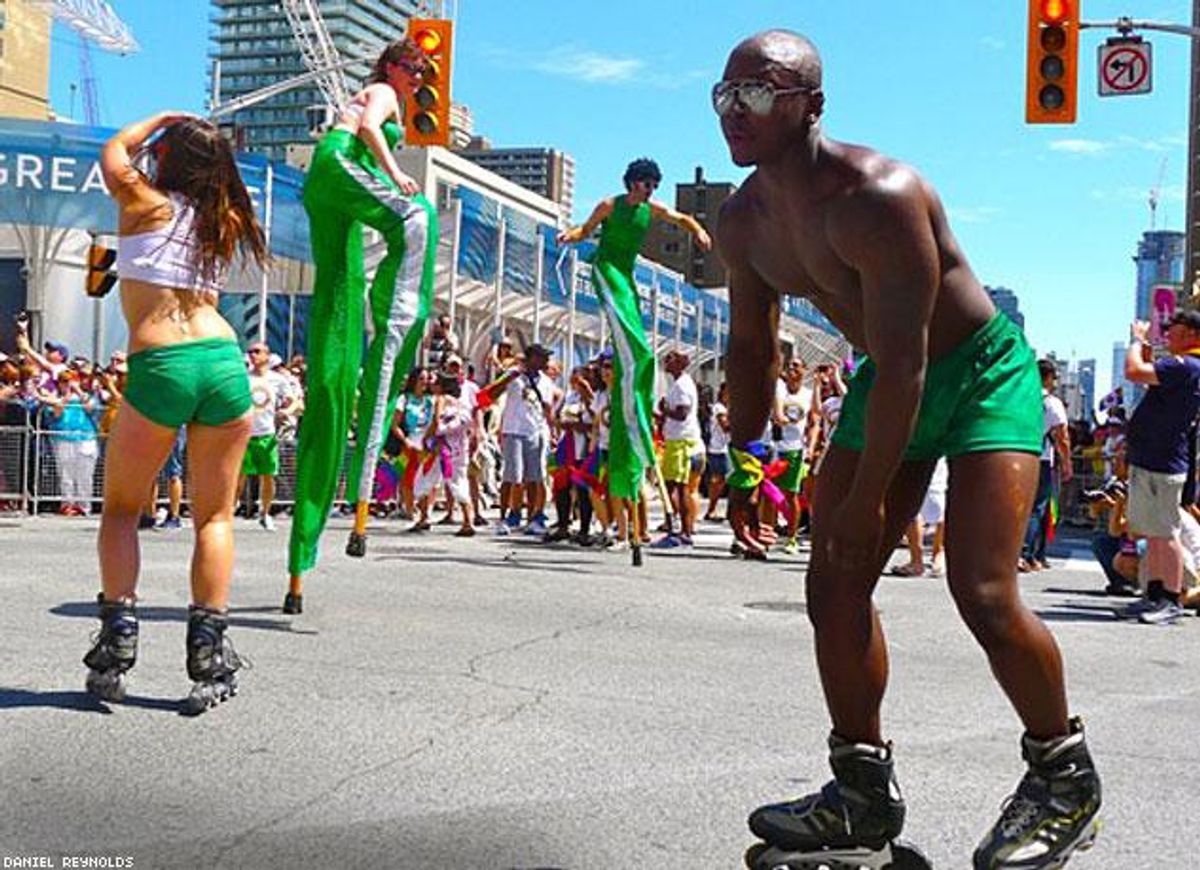 Toronto's 33rd Pride parade drew hundreds of thousands to the heart of the city in June to wave rainbows flags alongside Canada’s red maple leaf. Marchers walked down the street on stilts, in drag, on Rollerblades, or alongside children, friends, and family members who had come out to support the LGBT community.