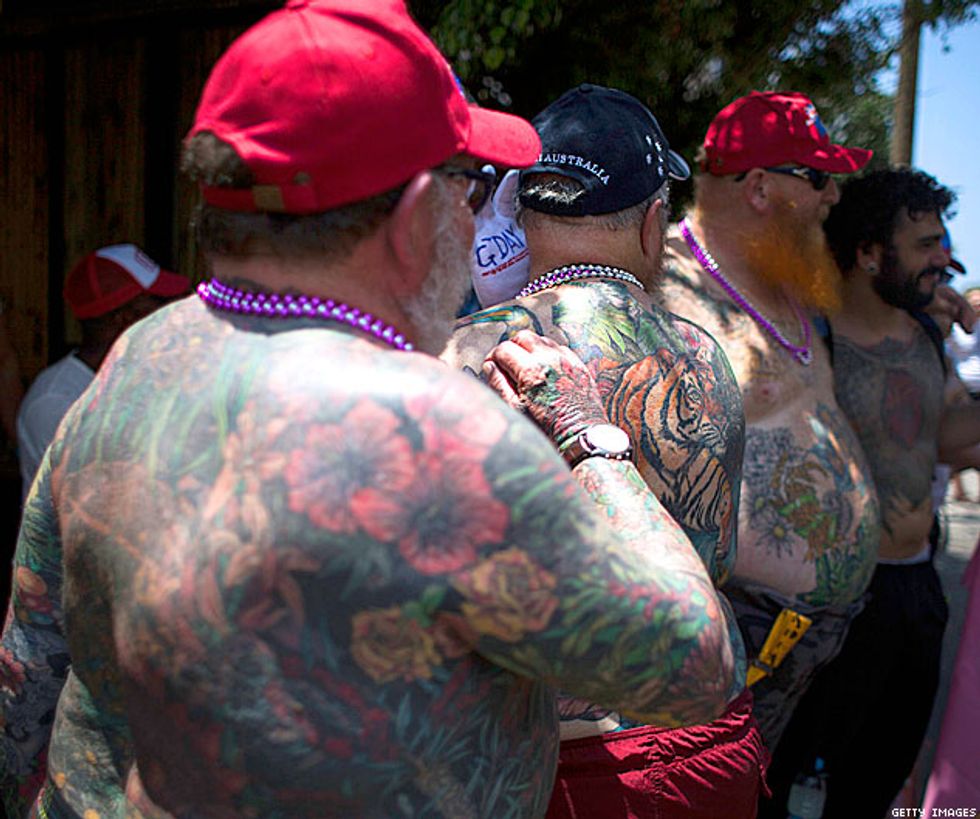 It's important to mind your balance on a moving parade float.