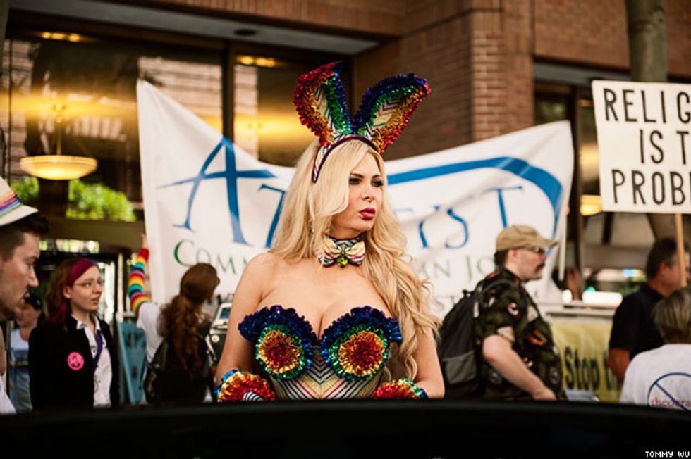 A record number of people turned out for Pride in San Francisco this year. More than a million by some accounts. Plus, support for the event could not be more mainstream, if skewed a little to the Silicon Valley side: Apple, Google, Yahoo, Dropbox, Uber, Twitter, and official grand sponsor Airbnb all were major participants. These photos of the 2014 parade by Tommy Wu show that San Francisco retains its title as "The City That Knows How." Interspersed with Wu's images are pictures my gay dad, Bob Harrity, took in what I am guessing is 1978. A lot has changed since then, but the spirit of both 2014 and 1978 have a lot in common. Thanks Tommy Wu, and thanks to Dad who is in the big Pride Parade in the sky. — Christopher Harrity