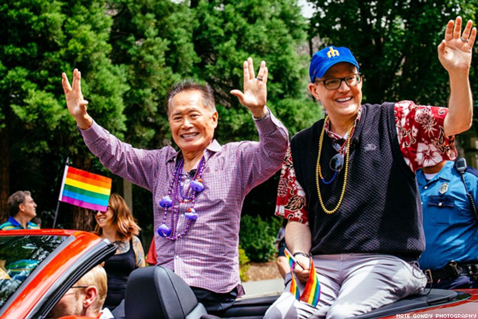 Celebrity grand marshal George Takei was joined by Seattle-based rapper Macklemore, a strong ally of the LGBT community, in a surprise visit. Thanks to Nate Gowdy Photography for these great photos. Read more about Seattle here, including one drag queen's confrontation with an antigay hater.