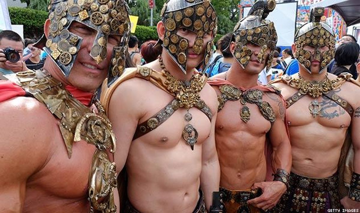 A culture clash of Roman soldiers, Taiwan Pride, and muscle.