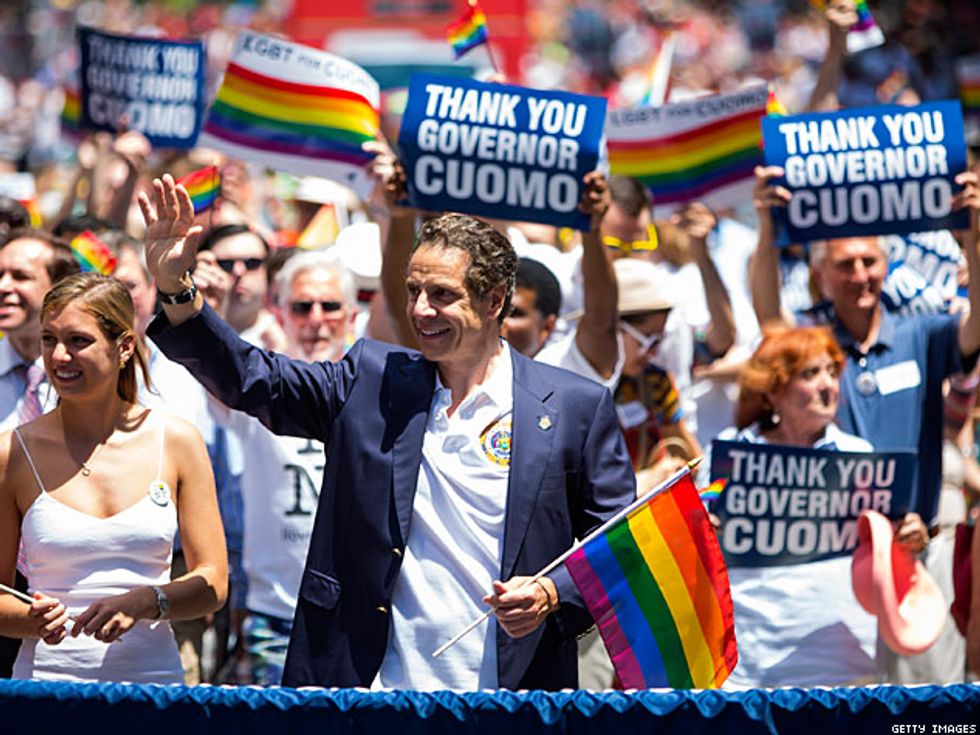 Thousands of marchers followed the parade route from 36th Street and Fifth Avenue to Greenwich and Christopher streets. It ended at the Stonewall Inn, where New York marchers commemorated the 45th anniversary of the 1969 riots credited with launching the modern LGBT rights movement. New York Gov. Andrew Cuomo attended along with grand marshals Laverne Cox, transgender actress and activist, actor Jonathan Groff and Rea Carey, executive director for the National Gay and Lesbian Task Force.