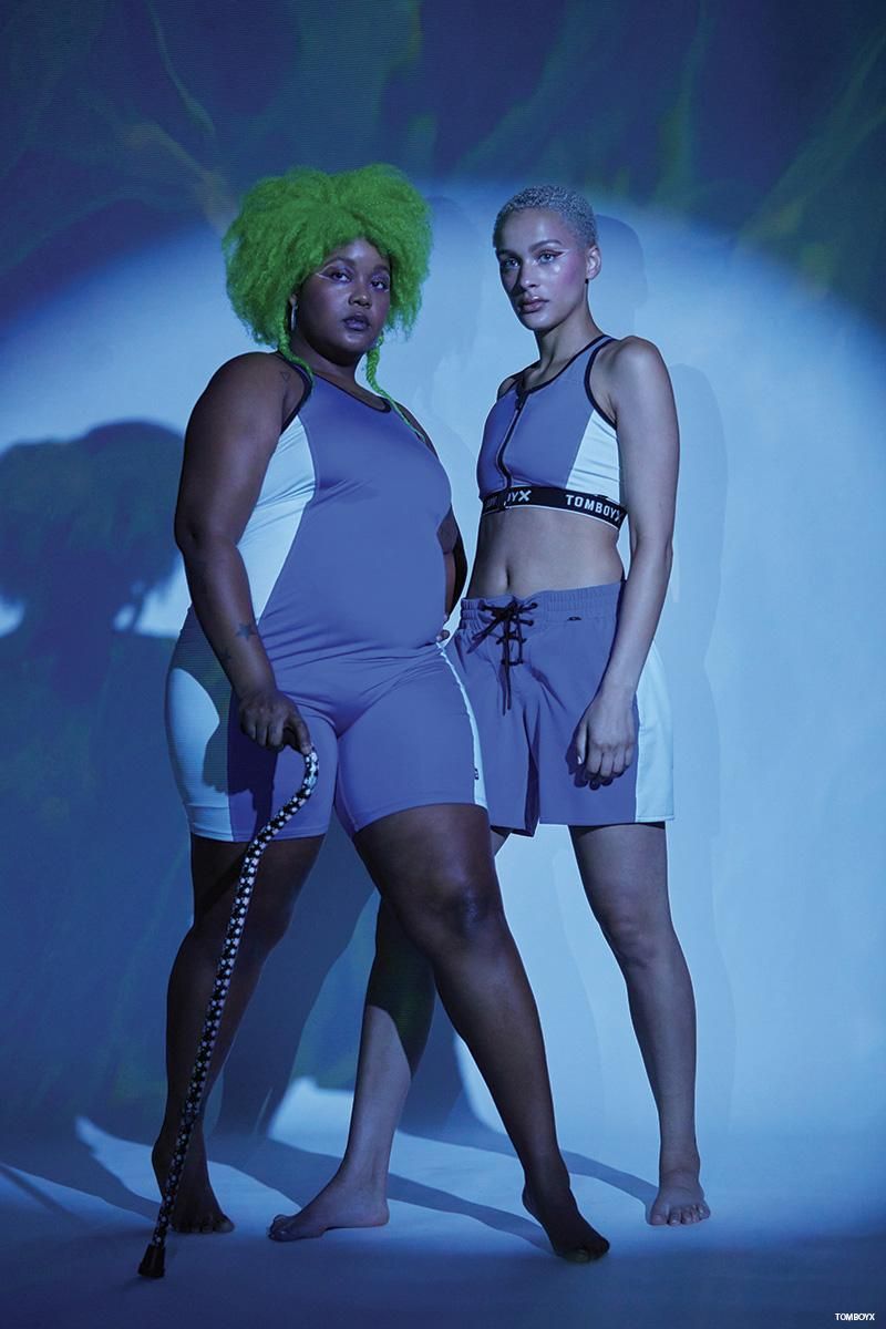 TomboyX’s unisuit, racerback zip top, and board shorts
