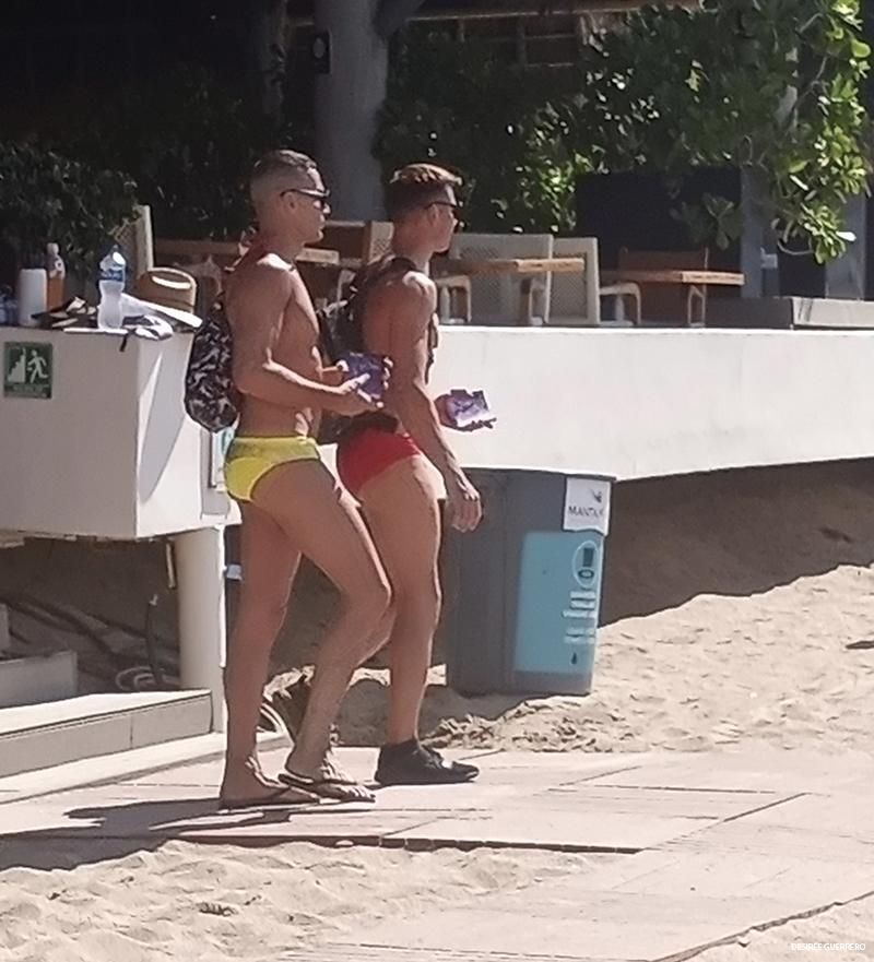 Speedo-clad boys on the beach in Zona Romantica