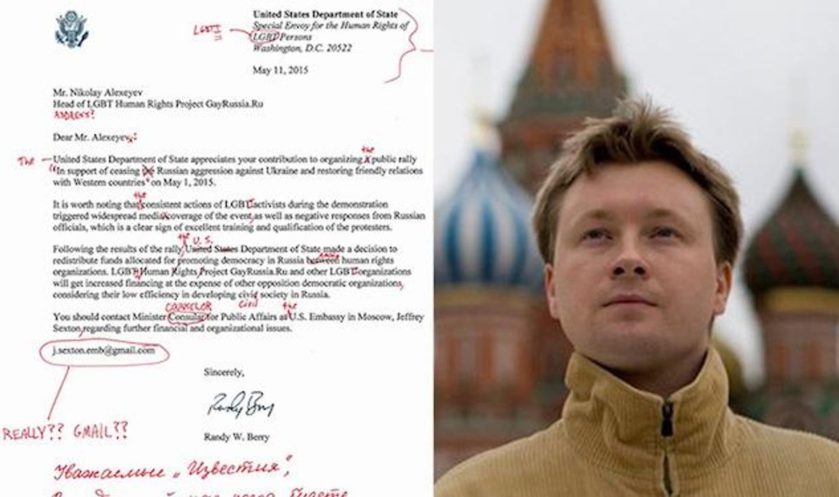 The popular daily paper on Wednesday published excerpts from a letter it claimed was written by U.S. Special Envoy for the Human Rights of LGBTI Persons, Randy Berry, to Alekseyev. The newspaper alleged the letter was exposed by hackers in an effort to "discredit Russian officials," according to a Google translation of the article's headline.